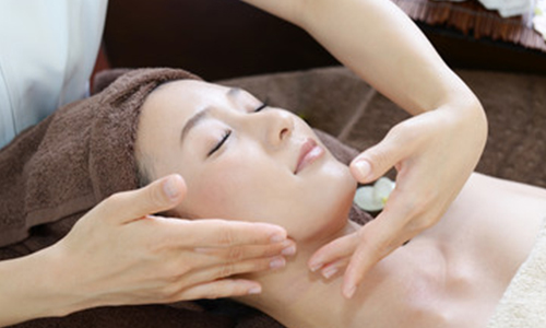 首・肩・デコルテ・顔の31か所のツボ押しをおこなってから、リンパ節に向かって老廃物の排出を促します。