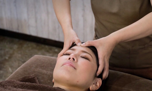 首・肩・鎖骨・腕・頭のマッサージをおこないます。